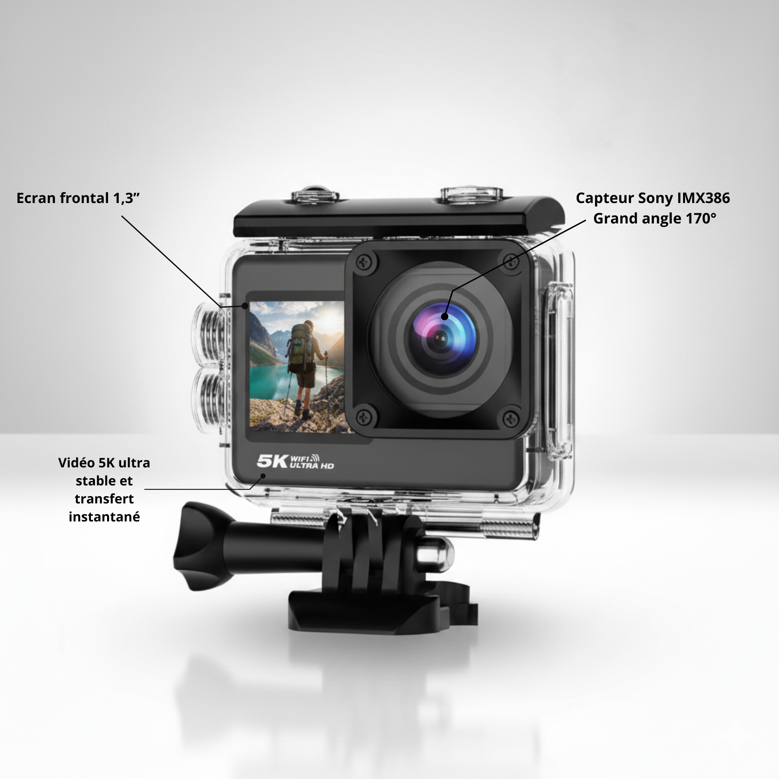 Pensée pour ceux qui veulent revivre chaque instant fort, cette caméra 5K transforme vos aventures en images vivantes.