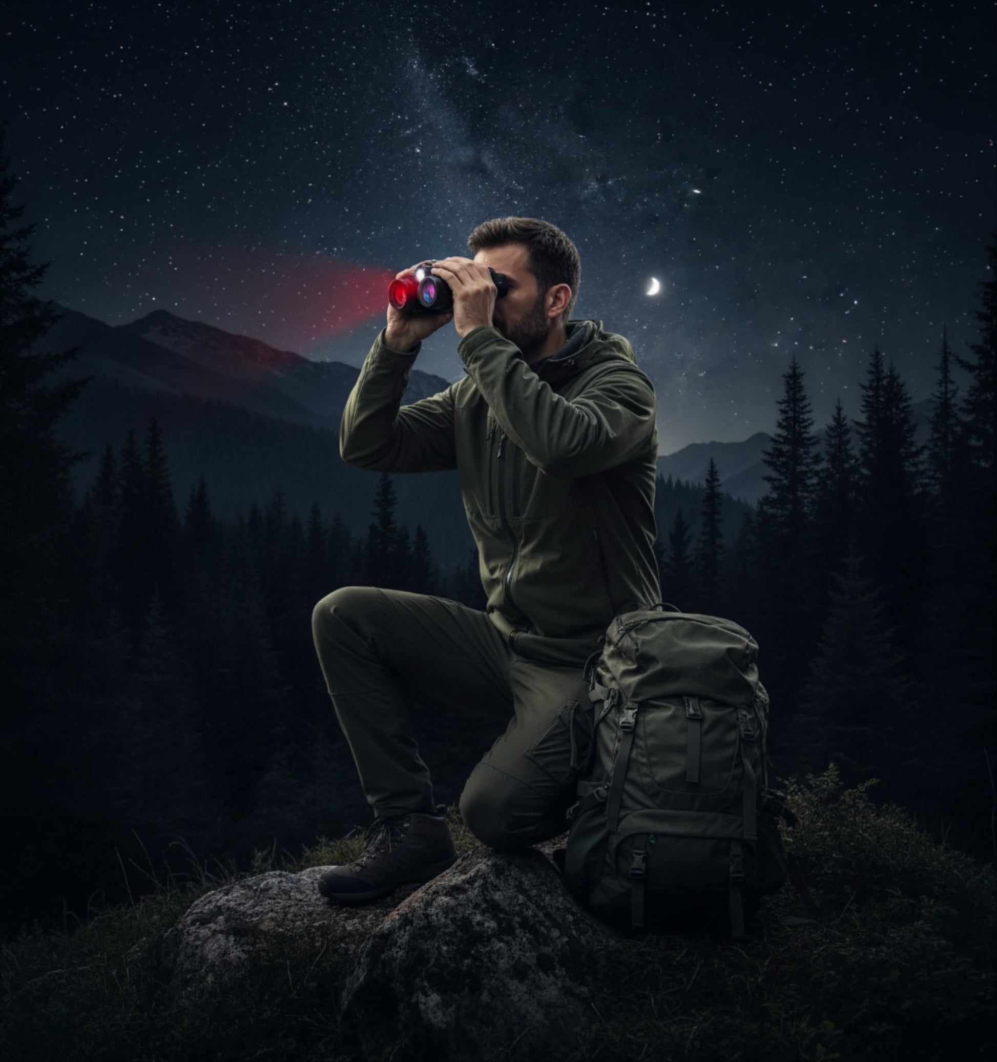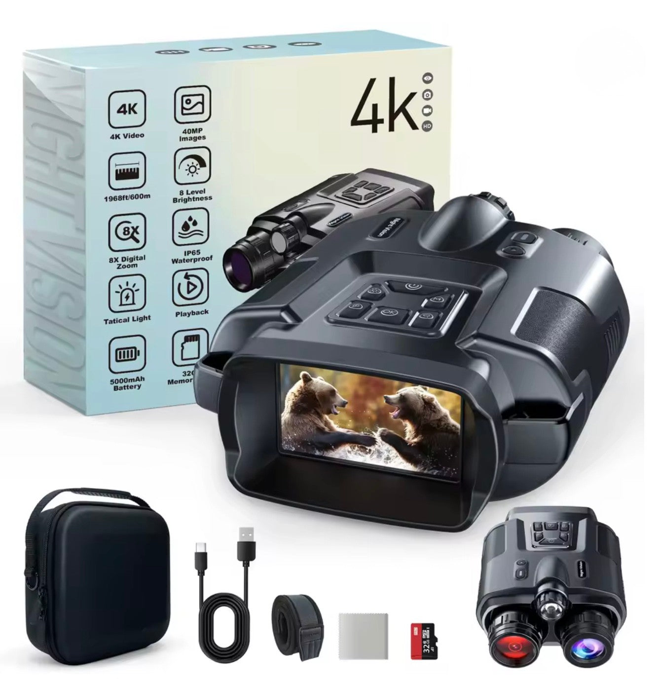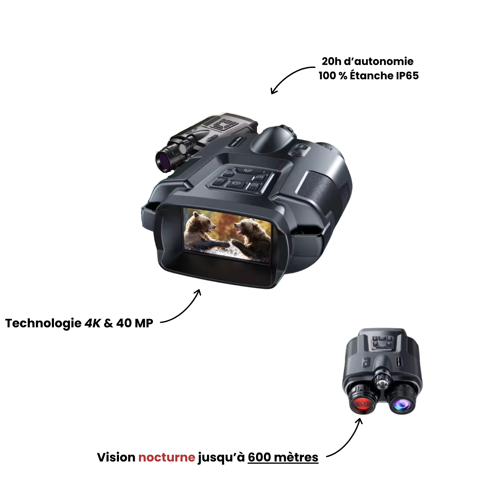 Explorez la nature dans ses moindres détails, de jour comme de nuit. Ces jumelles 4K Vision Nocturne combinent observation, enregistrement et vision nocturne pour ceux qui veulent voir plus loin que le regard nu.