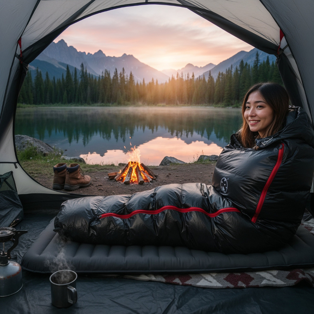 Son isolation en couette naturelle 400 g offre une chaleur enveloppante tout en préservant la respirabilité. Le tissu nylon 400T déperlant protège de l'humidité extérieure, tandis que la coupe momie et la capuche ajustable retiennent la chaleur là où elle compte.